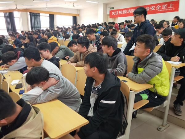 讲座中,朱班长通过播放不同类别的火灾发生视频,向我们解释了火灾发生的原因,之后又从火灾预防中需要注意的基本知识讲起。讲解中,朱班长深入浅出,从生活常事出发,用幽默风趣的语言主讲述了当我们出入大型场所遇灾难发生时安全工具的使用方法及逃生自救的路径,如发生意外时,应往人少的区域逃散;若无逃离条件时,应听从救援者安排。朱班长简洁明了的讲解使大家不仅了解了火灾预防的基本知识,更掌握了火场逃生的基本技能。