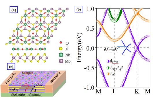 课题组基于密度泛函理论和紧束缚模型方法,成功预测了一种新的六角蜂窝状薄膜结构Nb2O3。通过计算陈数、量子霍尔电导,以及在自旋轨道耦合作用下的手性边缘态,我们证明了二维Nb2O3晶格具有室温下的本征的量子反常霍尔相,其拓扑带隙达到75meV;而且其铁磁居里转变温度TC = 392 K。进一步的声子谱和分子动力学研究表明,Nb2O3晶格具有良好的热和动力学稳定性,易于在实验中实现。我们的研究结果对促进量子反常霍尔相的实验设计及其在自旋电子学器件的实际应用具有重要价值。