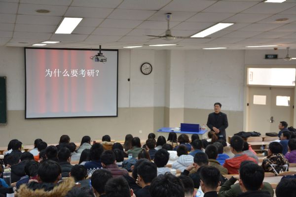 王少清院长现场统计了学生的考研意愿,并以幽默诙谐的语言讲述了为什么要考研,以及如何对待考研。他强调考研是实现梦想的最佳途径,是提升个人平台的有效方式,是实现幸福生活的最有效手段,是提高自己综合素质的有效过程。王院长详细地指明本科和硕士的区别,同时也鼓励同学们报考济南大学的研究生。