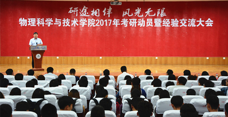 为帮助考研学生坚定考研目标,指导他们做好研究生考试及录取工作,6月6日下午,学院在第二学术报告厅举办主题为“研途相伴,风光无限”的考研动员暨经验交流大会。学院领导班子成员、各系主任、2014级学生班主任及全体学生工作人员出席会议,2014级同学参加了会议。会议由学院党委副书记王义主持.