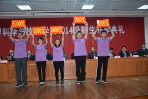 随后,伴随着校歌《你我同行》,王少清院长为新生学业导师颁发聘书,郑爱华书记为新生班主任颁发聘书。为了学分制和学业导师制的顺利实施,每位学业导师上台与自己所带的学生签订协议,使新生们感觉到了学院对他们的爱护和重视。副院长陈刚为今年考上我院研究生的同学颁发奖金,并勉励新生们尽快适应大学生活,努力学习,争取有一天自己也站在领奖席上。