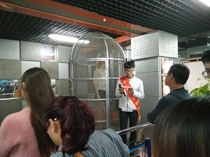 志愿者一行人来到山东省科技馆后被划分为4组,在不同的楼层帮助科技馆工作人员安排科技与艺术展,对各项科技与艺术项目进行宣传活动,并帮助维护展厅参观秩序,维护展品展项安全运行,指导观众正确操作展品,为观众解说答疑。
